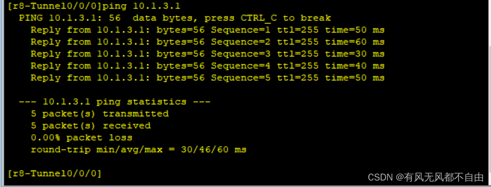[r8-Tunnel0/0/0]ip address 10.1.3.2 24