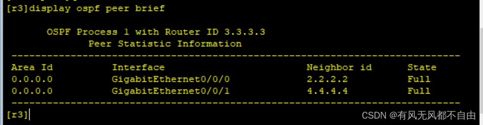 [r3-GigabitEthernet0/0/1]ip address 172.16.0.5 30
