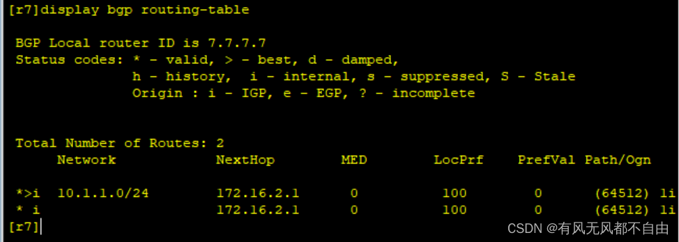 [r7]display bgp routing-table peer 172.16.4.1 received-routes