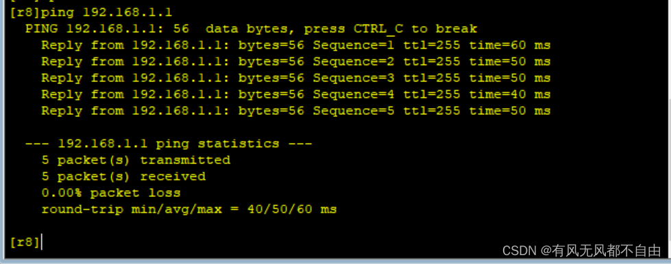 [r8]ip route-static 192.168.1.0 24 10.1.3.1