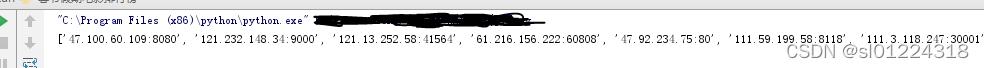 ????????代码运行后获取到完整的ip数据,接下来我们就可以使用这些代理了,这里需要使用random来随机选择一个ip。