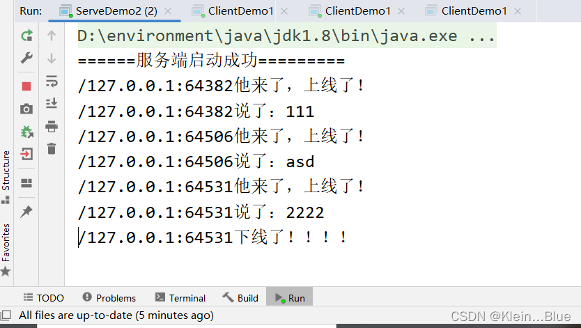 System.out.println(socket.getRemoteSocketAddress() + "他来了,上线了!");