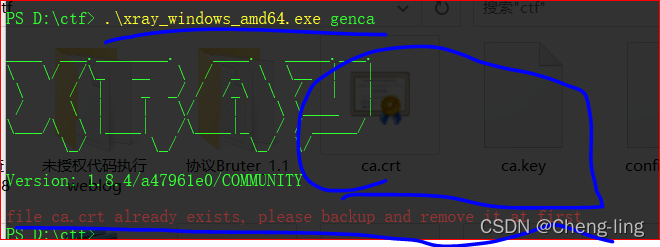 还需要使用xray生成一个证书认证导入浏览器解决不能抓取https协议得问题
