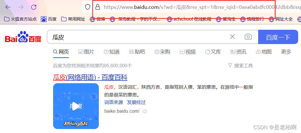 打开浏览器在百度引擎输入关键词进行搜索并打开开发者工具,会发现我们输入的关键词在url上