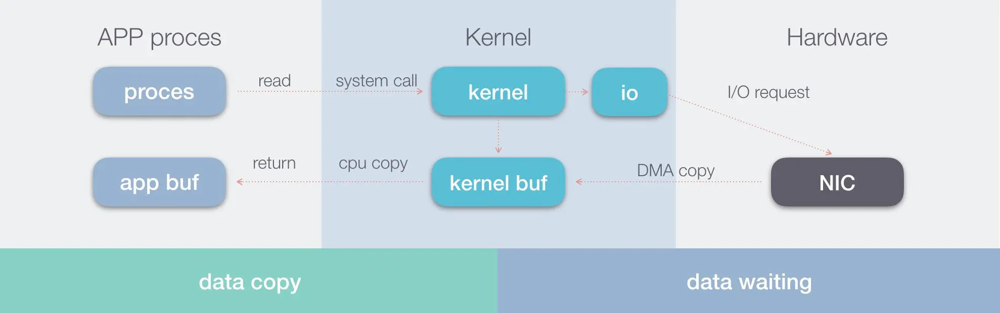 - 拷贝数据,就是系统内核在获取到数据后,将数据拷贝到用户进程的空间中。