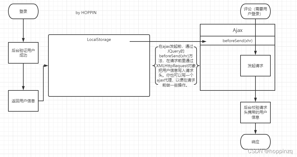 ????????首先,这种设计思路就是:你用户一登录,后台先去校验该用户是否存在,如果存在,就会返回用户所有信息,前端存入Storage中。之后每次需要携带用户信息请求的ajax,都会在请求前从Storage中取用户信息,可以选择带到请求头里。后台通过校验请求头,就知道该操作是谁发起的。