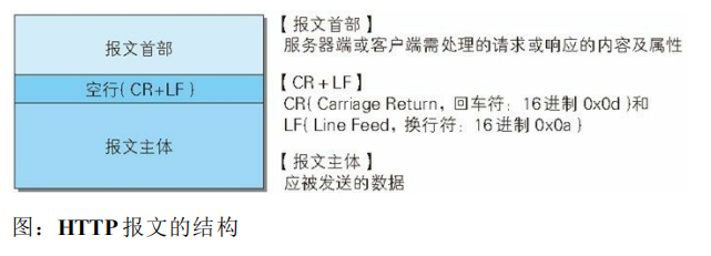 ??用于HTTP协议交互的信息被称为HTTP报文。客户端的HTTP报文叫做请求报文,服务器端的叫做响应报文。 ??**格式 ** :HTTP报文大致可分为报文首部和报文主体两块。通常并不一定有报文主体。