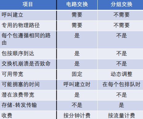 (1)是否建立连接: 分组交换不需要建立连接,更简单; 电路交换需要建立连接、通信、释放连接。 (2)效率: 分组交换采用统计时分复用共享带宽资源(高); 电路交换通信期间独占资源(低)。 (3)灵活: 分组交换采用存储转发,可动态选择路径; 电路交换采用电路连接,路径保持不变。 (4)时延性能: 分组交换由于存在竞争和拥塞,时延性能不能保证; 电路交换时延可以保证。 (5)其他