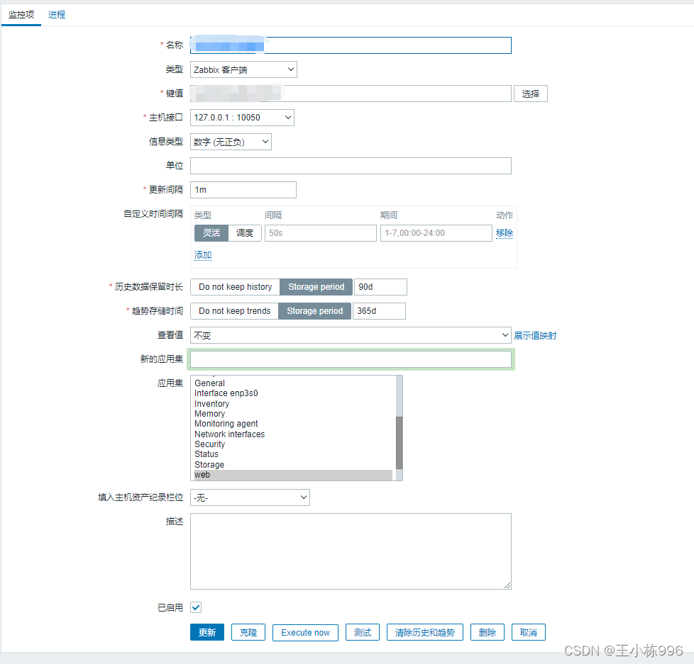 配置-> 主机- > zabbix-server->监控项->创建监控项