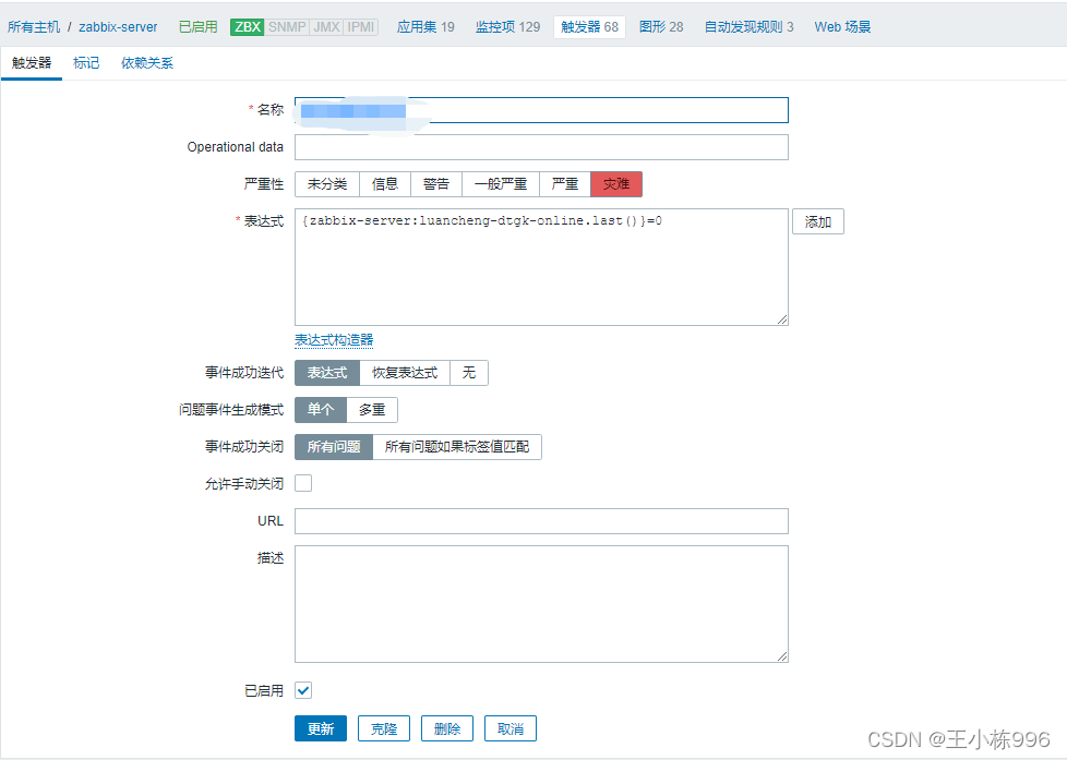 ?配置-> 主机- > zabbix-server->触发器->配置触发器