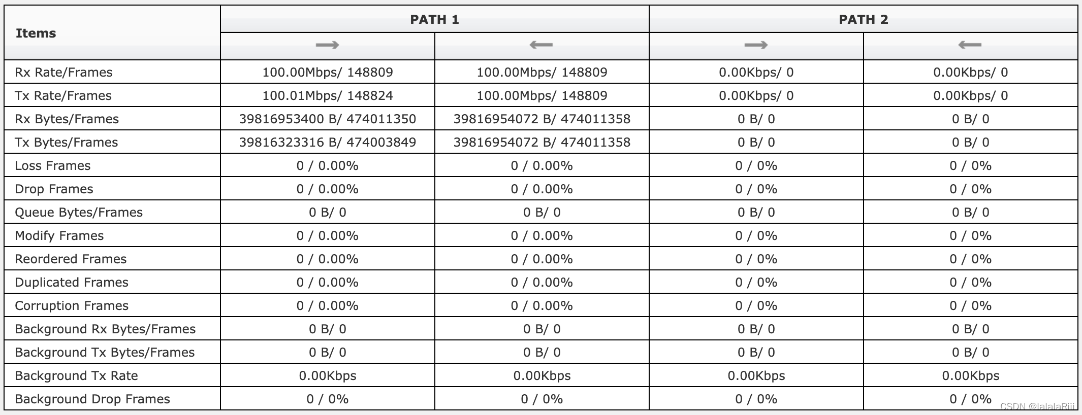 为了帮助测试人员直观地了解报文的损伤情况,广域网仿真仪大多带有实时展示流量损伤情况的工具。以 HoloWAN 为例,HoloWAN 的主界面设置有数据列表。在列表上可以清楚地看到通过 HoloWAN 的流量的瞬时速率、丢包率、误码率、乱序概率、报文重复概率等损伤。这个功能对于一般的测试来说已经足够了。