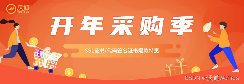 沃通CA开年采购季(2022年2月18日至3月18日)活动期间,沃通SSL证书隆重推出多年期优惠,最低5折,相当于买一年送一年!一次性采购,定期更新颁发,省时省力!沃通CA还提供售前、售中顾问式咨询和全流程跟踪服务,售后提供一对一技术指导和定期安全检测等一站式服务,申请证书更便捷!