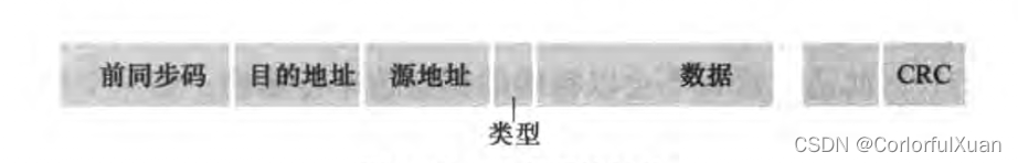 - 源地址(6字节):包含传输该帧到局域网上的适配器的MAC地址。