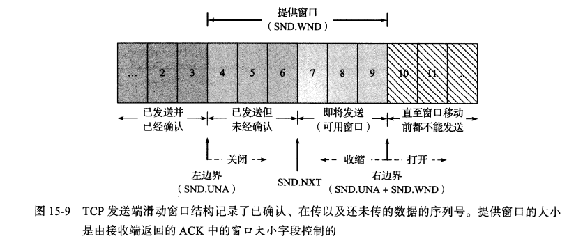 tcp以字节为单位维持窗口(而非包),所以上述分组的序号即为tcp的序列号。 SND.WND : 滑动窗口大小 关闭 : 滑动窗口左边界向右移动 打开 : 滑动窗口右边界向右移动 收缩:: 滑动窗口右边界向左移动