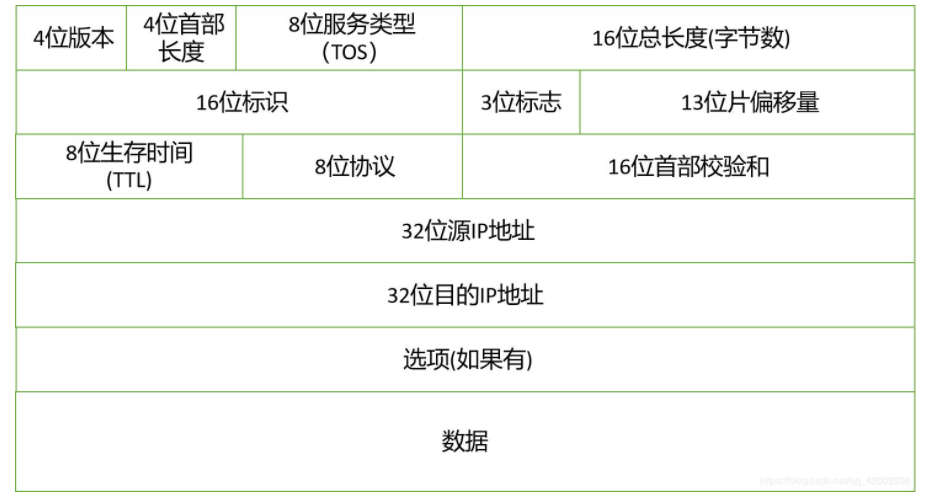 简单分析下ipv4消息头。ip消息头可分为20个字节的固定头部40字节可扩展头。 总长度:可携带数据大小(16位可表示范围0~65535),一个ip数据报中最大携带65535bit数据。