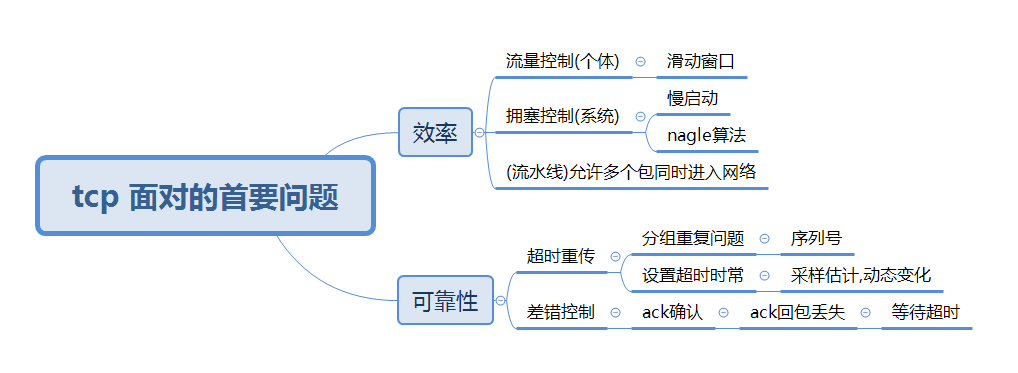(1)tcp分包,将byte流打散为一组ip可携带的tcp分组,这叫做组包 (tcp组包是也是为了避免ip分包,详细过程参考上文ip分片)。序列号为每个分组在整个数据流中相对第一个字节的偏移,使用偏移作为序列号的优点是可以在路由过程中重新组包(分组大小在传输过程中可变)。 (2)tcp最大发送数据数量是由滑动窗口决定的,每发送一个滑动窗口的数据,就会设置一个定时器,每当收到一个分组的ack应答时,就会重置定时器,如果定时器超时了,就会重新发送对应的分组。滑动窗口一次可进入网络的数据为WS/R(单位bit/s) ,W为窗口大小,S为分组大小,R为发包到收到回报的时间。 (3) tcp使用的ack是累积的,延迟确认的。