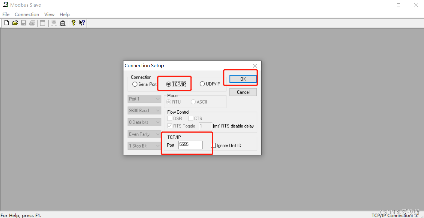 - ?选择Tcp的连接方式;设置端口号,点击OK即可创建成功