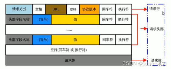 HTTP请求消息由请求行、请求头部、空行和请求体4个部分组成。