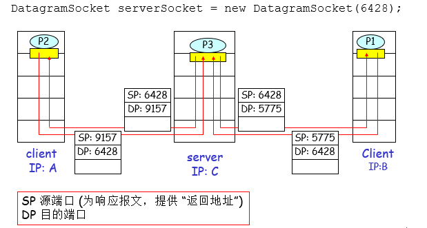 具备相同目标IP地址和目标端口号,即使是源IP地址或/且源端口号的IP数据报,将会被传到相同的目标UDP套接字上