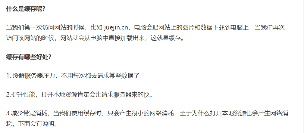 当我们访问一个网站的时候就会像这个网站发起请求,服务器就会向我们返回相应的资源,如果服务器认为这个资源是应该被缓存下来的,比如css文件,js文件,图片文件,他就会在响应头增加一个Cache-control他把设置成max-age:31536000(单位是秒)浏览器就会再本地缓存当中存下对应资源的文件,下次再去请求相同的网站的时候,浏览器就回去检查max-age是否过期,如果没有过期就会从缓存里面获取资源,这样一来页面的加载速度就会快很多,省去了去发送http请求过程,http请求时不稳定的 第一次发送请求服务器会返回200状态码,会设置Cache-control,
