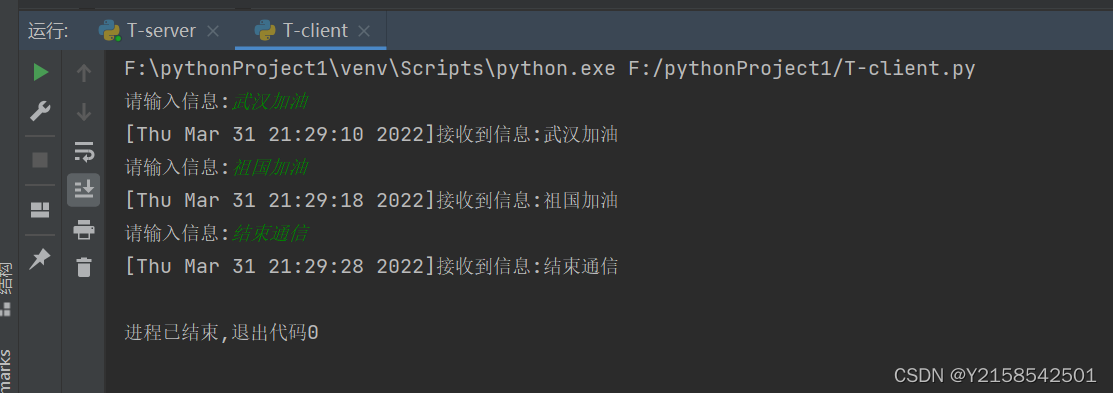 if receivetext=="结束通信": # 判断接受到的数据是否为结束通信