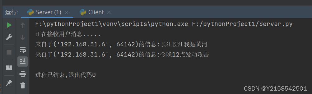 print('来自于{0}的信息:{1}'.format(addr,receivetext))