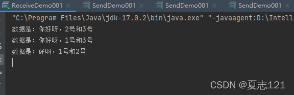 ?模拟聊天室:开启一个接收端,三个发送端,实现模拟聊天室