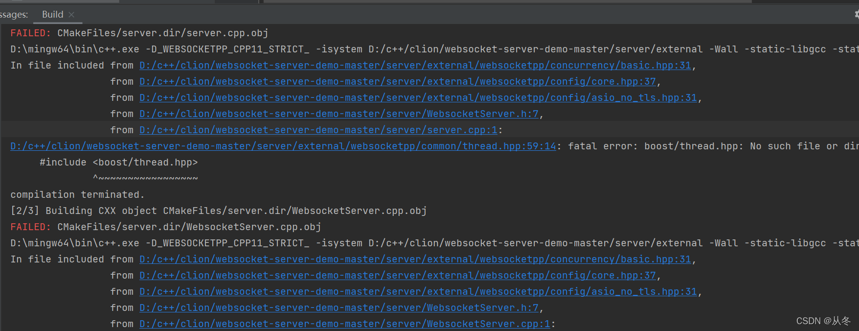 在mingw下编译websocket最主要的是boost库,在官网上下载以后在文件夹中执行命令。