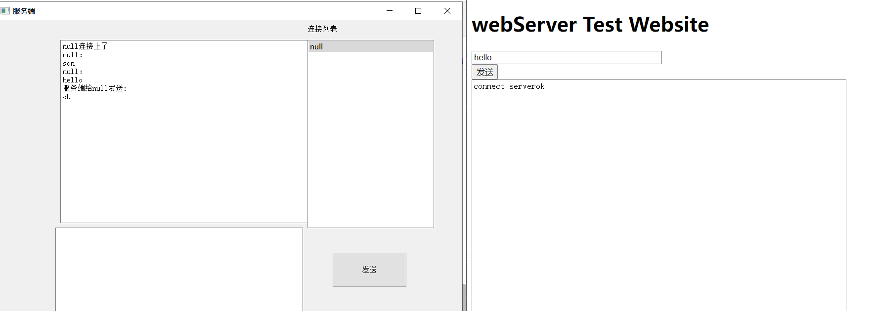 通过自己写的前端代码或者是用网页版测试客户端都可以: 自己写的网页端:  网页版测试客户端: 地址:https://www.qvdv.com/tools/qvdv-websocket.html