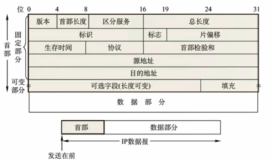 (4)总长度 指首部和数据之和的长度;