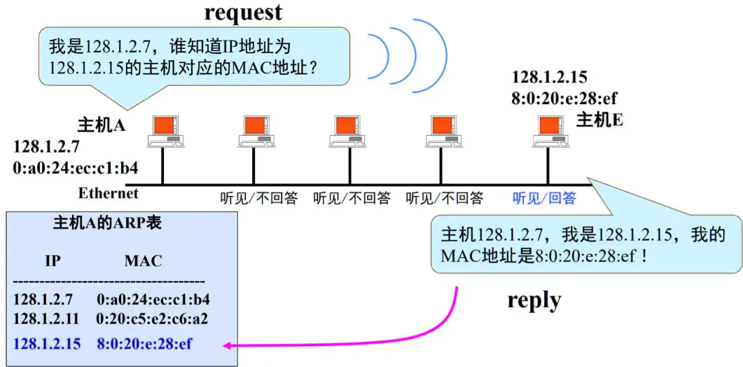 地址解析协议ARP:已知机器IP地址寻找出其对应的硬件地址。