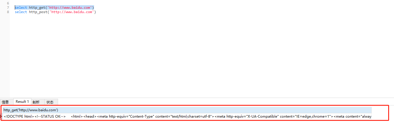 有没有遇到这种场景呢,当使用mysql做复杂字符串处理的时候总感觉mysql内置的函数不够用呢。比如做字符串切割,解析xml等。而这个时候你恰恰对编写mysql函数或者存储过程缺乏一定的经验积累、而你擅长的可能是c/c++,java、c#或者其它编程语言。当然,你也可以把数据库中的数据加载到应用程序中去处理,然后利用应用程序灵活复杂的字符串处理函数实现功能。当然这也是可以的的,只不过注意力需要做切换,因为有的时候可能你想的是只对数据库操作就实现你的目标。再比如我想把现有mysql数据库中的数据同步到其它数据源如oracle。当然这种需求通过应用程序都是可以实现的 只不过始终要把数据库中的数据复制一份到应用程序,这时候应用程序其实扮演的也是临时数据库的角色,只不过这个临时数据库的存储介质是内存。数据库和应用程序其实没有本质上的区别。只不过数据库是相对固化的、当然如果你有兴趣去修改数据库的源码那也是可以的。数据库设计者也考虑到了拓展性的问题,所以有了用户定义函数(UDF)用来补充内置函数的不足。编写MYSQL UDF需要一定的c/c++基础。其它数据库也是充满了UDF的影子,比如oracle 因为它内置了java虚拟机所以可以直接利用java的语法去创建函数 这样的话明显在极大的程度上提高了数据库的数据处理能力。还有h2嵌入式数据库,因为它本身就是使用java来写的 所以它的UDF函数当然可以直接利用java了。如果我们脑洞够大实力够强的话,我们在Mysql里面其实可以集成一个java虚拟机然后用java语法去编写自定义函数。当然这里我们只简单对c/c++实现的http接口做个分析。http协议早已经成为一种标准,因为它可以跨语言跨平台。这样理论上我们使用任何语言编写的http接口都可以被mysql所利用了,当然执行效率又是另一方面的事情。