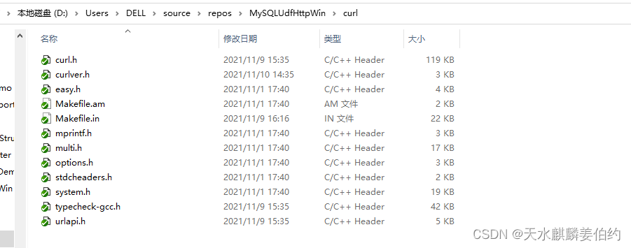 以下示例程序中使用mysql8作为测试对象,示例程序包含1个头文件和1个源代码文件,项目中需要引用curl的头文件和mysql8的头文件
