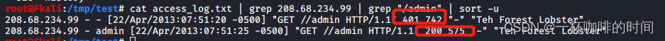 root@Fkali:/tmp/test# cat access_log.txt | cut -d " " -f 1 |sort -u