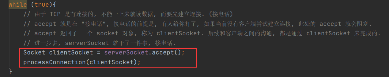 Socket clientSocket = serverSocket.accept();