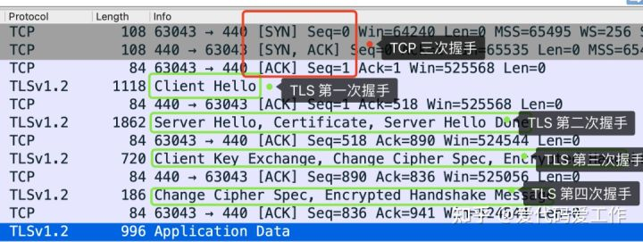 下面看一张图,下面这张图是TLS的四次握手,出现下面这张图之前,HTTP三次握手已经完成