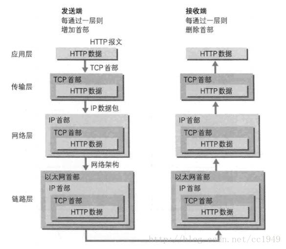 可以先看下面这张图(图中传输层=运输层,链路层=网络接口层)  这里不要误解认为一次请求就是上面这种,那是错误的 举个例子: HTTP三次握手中第一握手,客户端发送SYN报文,如果报文被分成了三个数据包,那第一次握手至少会经历上面三次流程