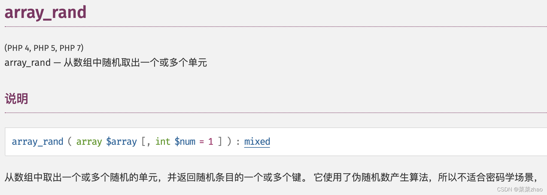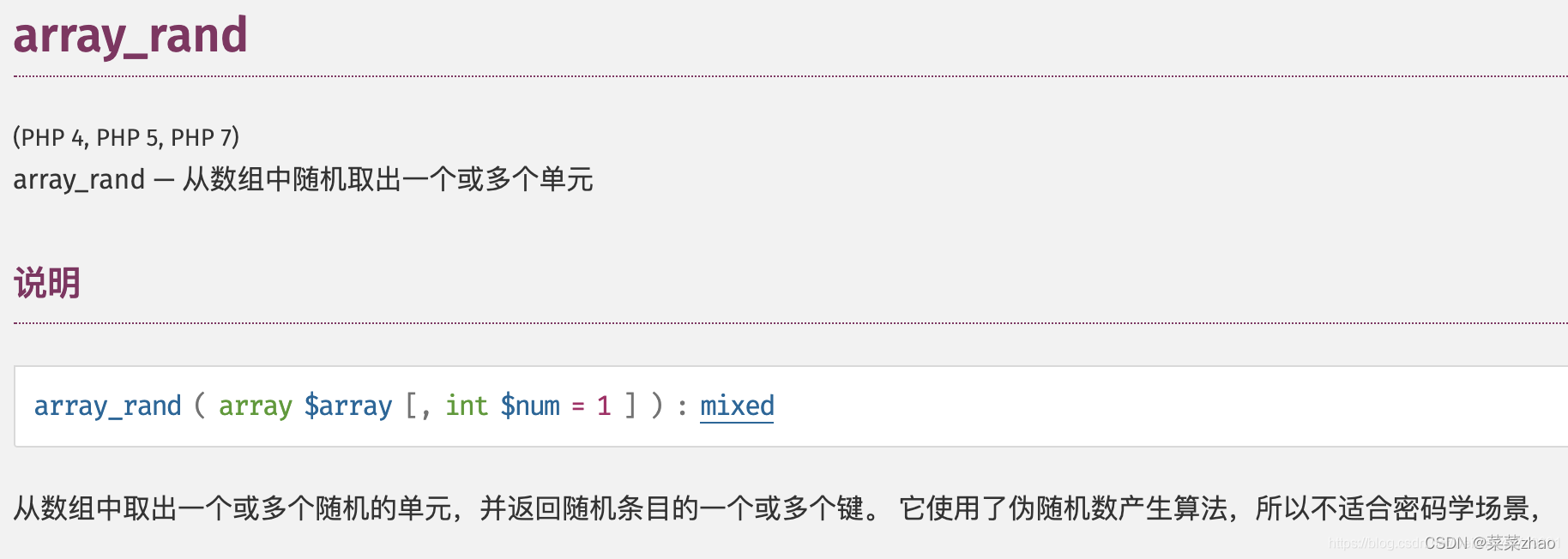 array_rand():从数组中随机取出一个或多个单元