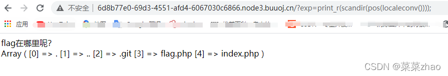 但是要如何构造scandir('.'),这里有个‘.’直接传入就相当于还是传入一个参数,exp还是被过滤掉了,所以我们要想个其他的方法代替'.'