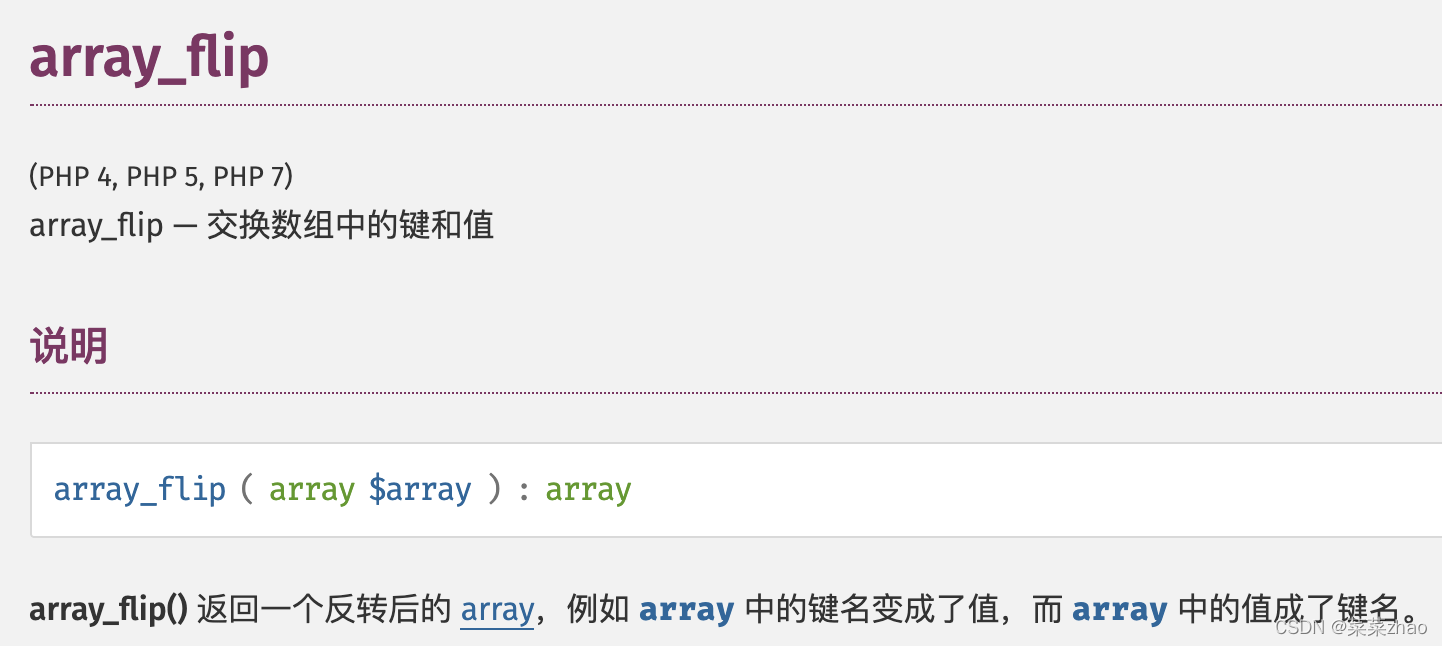 array_flip():交换数组中的键和值。