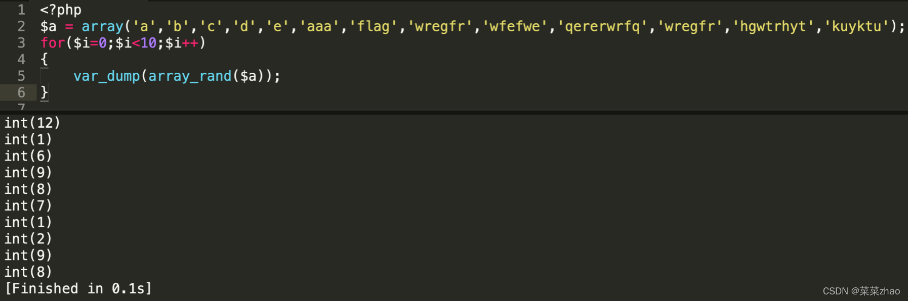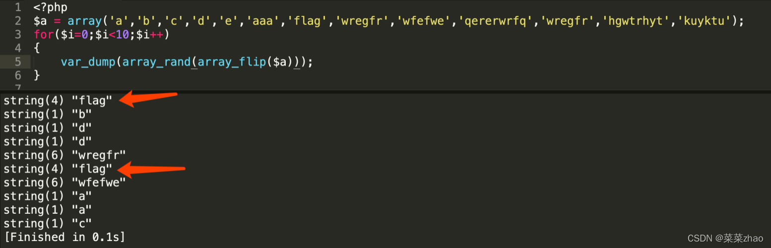 由于是使用array_rand()函数随机取出键值,所以可能需要多刷新几次才能取出flag.php。