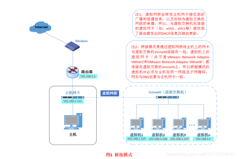 目录 虚拟机网络连接方式:Bridged(桥接模式)在桥接模式下,VMware虚拟出来的操作系统就像是局域网中的一独立的主机,它可以访问网内任何一台机器。不过你需要空闲的IP地址,并且需要手工为虚拟系统配置IP地址、子网掩码,而且还要和宿主机器处于同一网段,这样虚拟系统才能和宿主机器进行通信。?