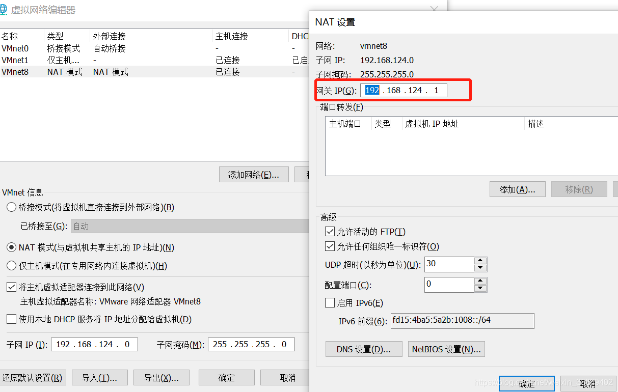 1、配置静态IP和DNSstep1:首先选中NAT模式,取消DHCP模式,并记住网关IP及子网掩码,然后选择NAT设置(配置完成之后,如果不生效,重启虚拟机即可)