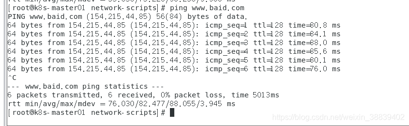 step5:使用systemctl restart network.service命令,重启网络,ping 8.8.8.8 通的话,说明可以上网了,ping网站通的话,说明DNS也没问题了,如果不通,检查关闭宿主机和虚拟机的防火墙,基本就没什么问题了~~~