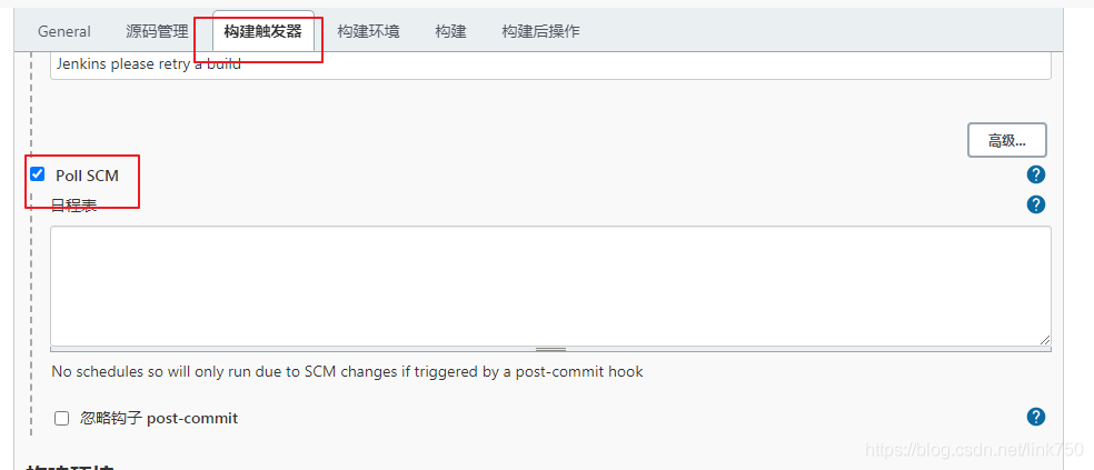 jenkins自动构建的方法,现在已经是比较流行的做法,大大降低了手动操作的繁重工作。我们需要做的主要就是配置相关的内容即可。下面直接说干货: gitblit的相关配置: 1、安装gitblit和jenkins,这个网上很多教程,此处不做介绍 2、到gitblit安装路径C:\Program Files\Gitblit\gitblit-1.9.1\data\groovy下,复制一份jenkins.groovy文件,并重命名,名字随意,此处我修改的文件如下截图:  3、打开刚才重命名的文件,修改def jenkinsUrl = gitblit.getString('groovy.jenkinsServer', 'http://yourserver/jenkins')这一行为def jenkinsUrl = gitblit.getString('groovy.jenkinsServer', 'http://192.168.157.134:8080')其中记得删除“/jenkins”后缀,server的内容就是自己安装的jenkins的ip以及端口,其他的东西不动,保存关闭。 4、进入服务中,启动gitblit  5、启动之后到gitblit的web管理界面,到需要jenkins自动构建的项目下面,点击receive,将刚才重命名的*groovy文件添加进来并保存,此时gitblit的配置已经结束。如下截图:  5、jenkins的配置: 1、源码管理:  2、构建触发器   在构建触发器中,一定记得勾选pollscm,否则无法触发,刚开始在这里搞半天,一直触发不了,原以为是定时轮询的触发,实际是定时轮训和push触发都需要勾选。