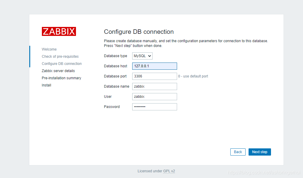 修改目录的权限: chown -R zabbix:zabbix /usr/local/zabbix