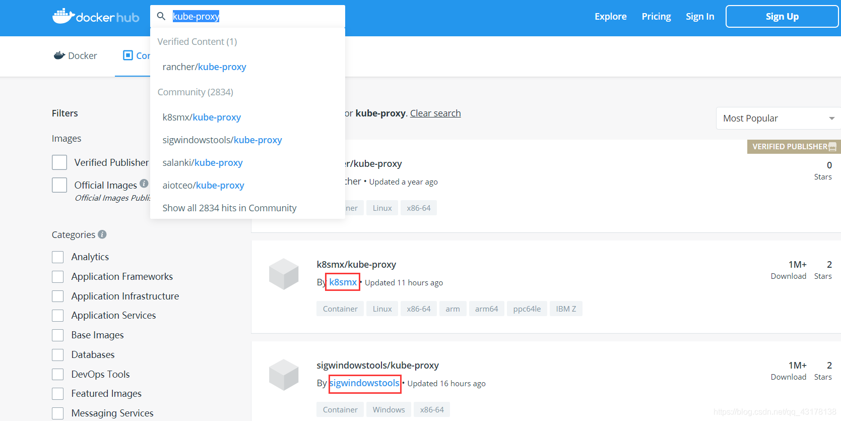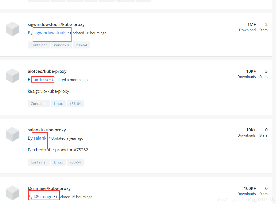 写脚本从DockerHub的其他仓库里拉取镜像。 去DockerHub搜索kube_proxy、kube_kube-apiserver等等。  就是上图报错中我框出来的这些东西。