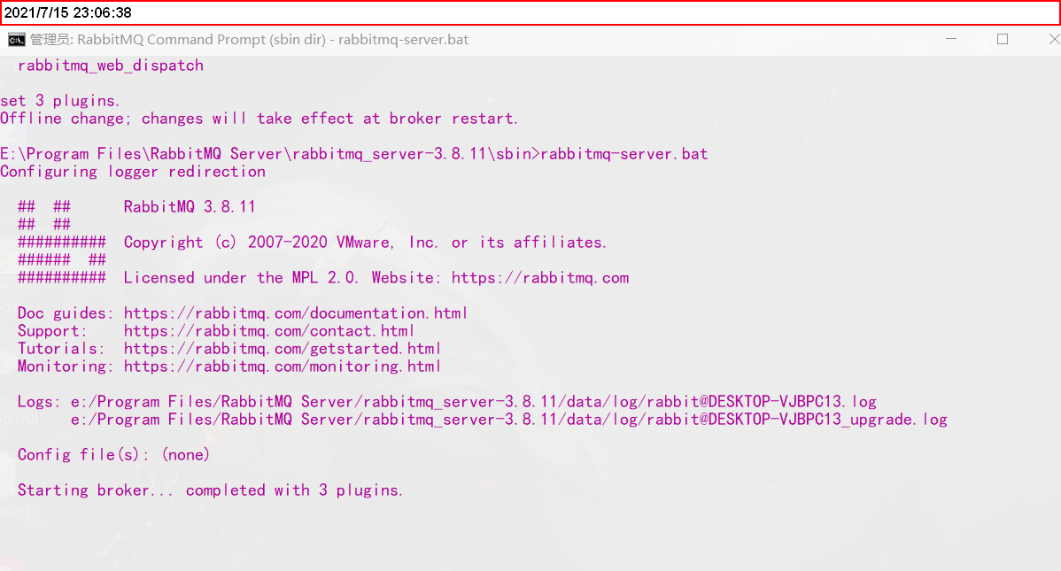 E:\Program Files\RabbitMQ Server\rabbitmq_server-3.8.11\sbin>