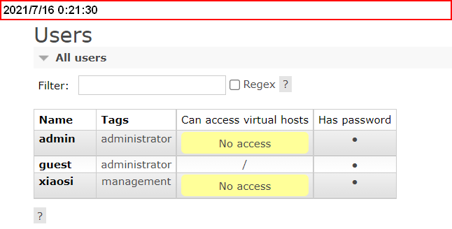 administrator 超级管理员 可以登陆控制台、查看所有信息、对rabbitmq管理monitoring 监控者 登录控制台、查看所有信息policymarker 策略制定者 登录控制台、指定策略managment 普通管理员 登录控制台